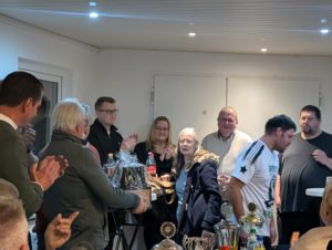 Ein besonderer Moment des Abends war der Dank von Peter Verweyen an Johannes Pelgrim, der die Inklusionsschiedsrichter das ganze Jahr über ehrenamtlich von Turnier zu Turnier begleitet und unterstützt. Als Anerkennung erhielt er ein kleines Präsent.