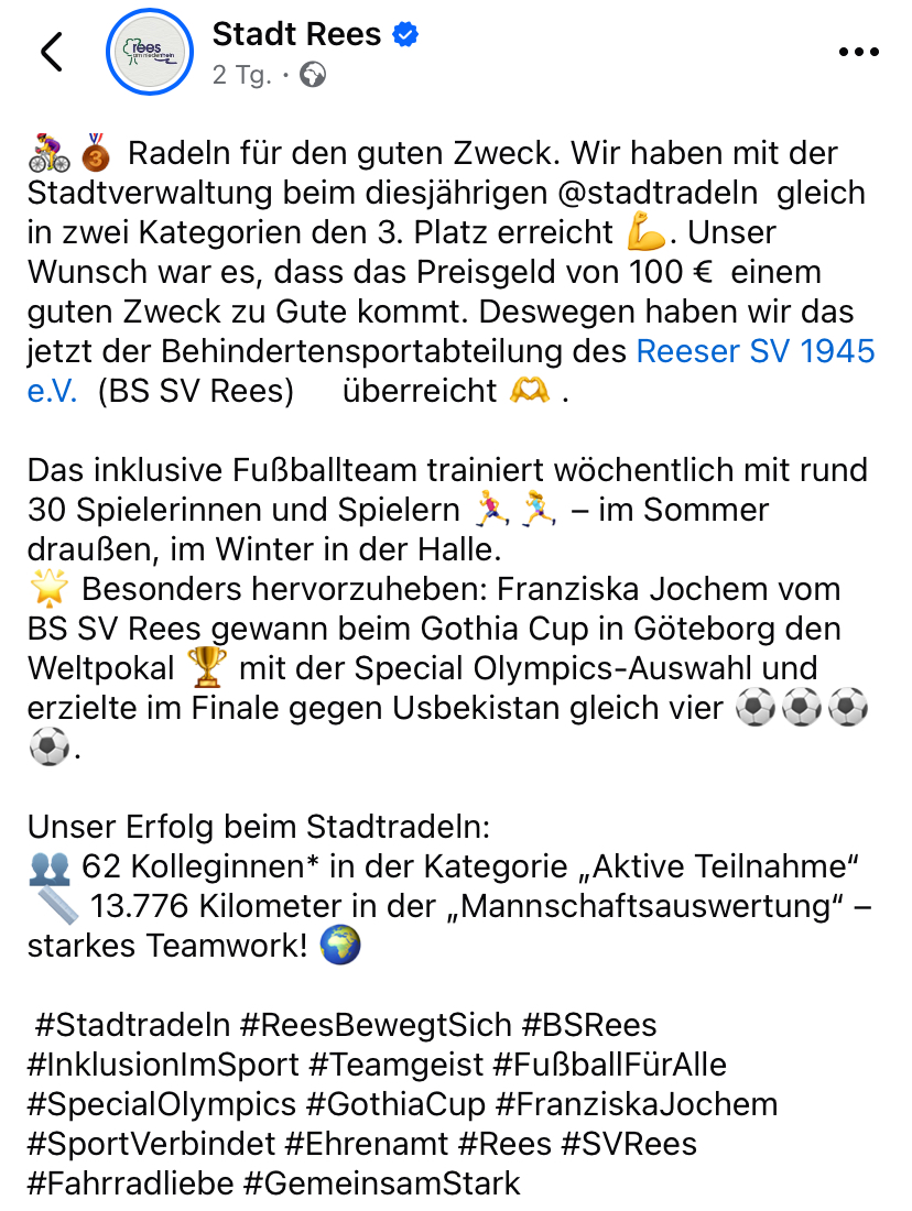 Stadt Rees, Danke für die Spende!