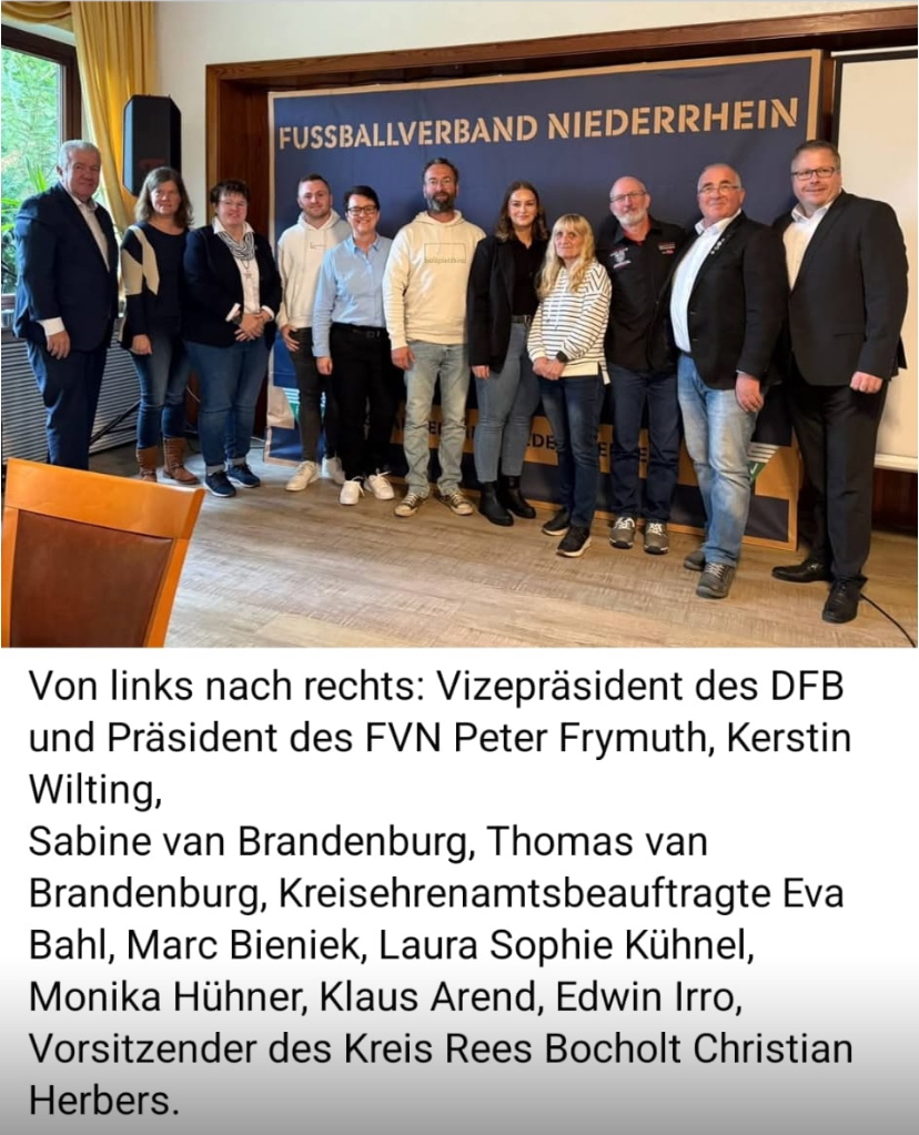Die Ehrungen wurden im Namen des Kreises Rees-Bocholt und des Fußballverbandes Niederrhein (FVN) durch den Kreisvorsitzenden Christian Herbers sowie den FVN-Präsidenten Peter Frymuth persönlich vorgenommen.